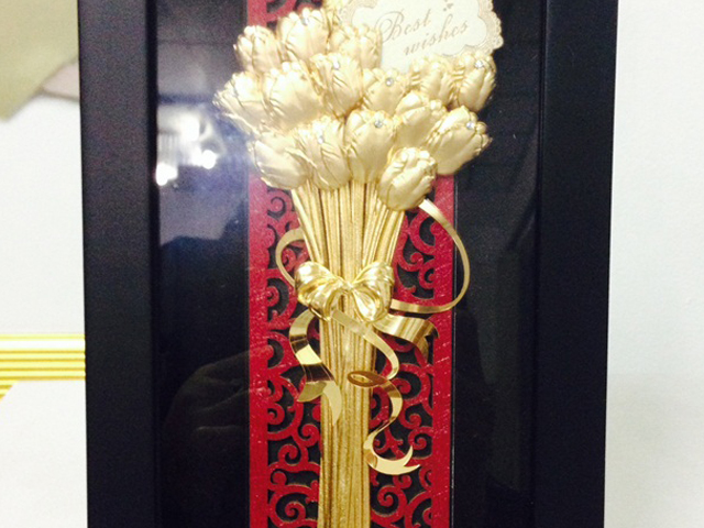 Các món quà phải mang lại sự bất ngờ, một bông hồng thật được dát vàng 24k làm từ Ấn Độ là sự lựa chọn hoàn hảo đó. Những bông hồng được chọn lựa phải trong thời kỳ đẹp nhất. Bằng bàn tay khéo léo, tinh tế của những nghệ nhân Ấn Độ, những bông hoa được phủ lớp vàng nguyên chất 24k.